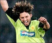 Sahibzada Mohammad Shahid Khan Afridi (born 1 March 1980 in Khyber Agency), popularly known as Shahid Afridi, is a Pakistani cricketer currently playing for the Pakistani national team in the international circuit. He made his ODI debut on 2 October 1996 against Kenya in Nairobi[1] and his Test debut on 22 October 1998 against Australia at Karachi.[2] He is known for his aggressive batting style, and currently holds the highest career strike rate in the history of international cricket. In a recent survey, Afridi was named as the most popular cricketer in Pakistan.[3] He also holds the record for the fastest one day century which he made in his debut innings, as well as scoring 32 runs in a single over, the second highest scoring over ever in an ODI.